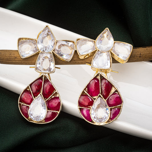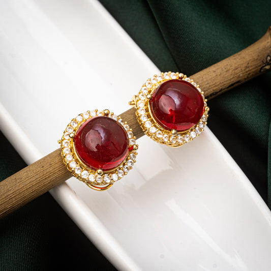 Gold plated Kundun Stud- Red Chatham Gems | Khalis Jewellery