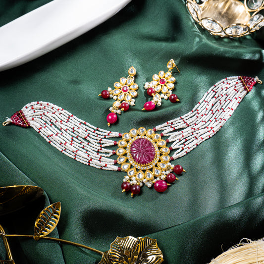 Red Chatham Gem Kundan Choker Set | Khalis Jewellery